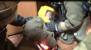 В течение нескольких минут три газодымозащитника с включенными аппаратами, полностью вслепую, нашли в «задымленном» помещении своего товарища, ориентируясь только на команды старшего и используя пожарный рукав в качестве направляющего троса. Обнаружив «пострадавшего», пожарные надели на него спасустройство и эвакуировали в безопасное место.