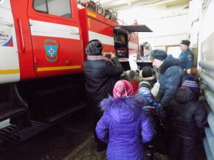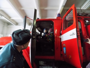 Кроме того, ребятам наглядно продемонстрировали, чем располагают современные пожарно-спасательные подразделения, познакомили их с внутренним устройством пожарно-спасательного подразделения, с оснащением пожарного автомобиля, а так же всем желающим была предоставлена возможность посидеть за рулем настоящей пожарной машины. Всем пожарным было очень приятно, что ребята подготовили стихи про доблестных пожарных.