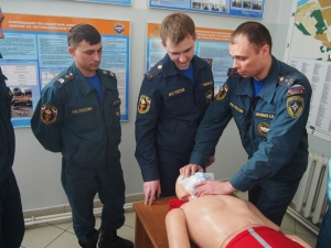 Так, на базе ФГКУ «13 ОФПС по Тверской области» заместитель начальника части старший лейтенант внутренней службы Артем Зиновьев провел практическое занятие с сотрудниками пожарно-спасательной части № 4 по охране Центрального района города Твери в отработке навыков по оказанию первой помощи пострадавшему.