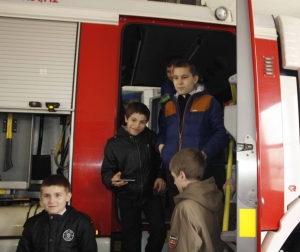 Затем юным школьникам показали оснащение боевой техники, стоящей на вооружении части. Ребята смогли не только посмотреть спецтехнику, но и посидеть за рулем пожарной машины и примерить на себя боевую одежду огнеборцев.
