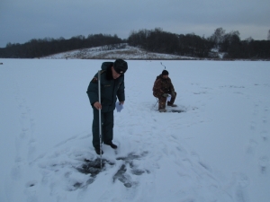 - Рославльский район, 2 километра восточнее поселка Холмец – водохранилище Смоленской АЭС (толщина льда 12-16 см, на льду вода);
