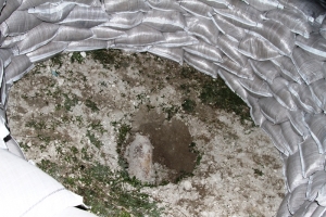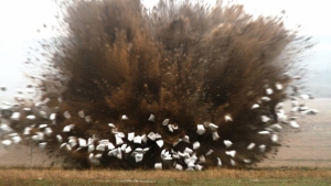 Для того чтобы минимизировать последствия от уничтожения боеприпаса, во время подготовительных мероприятий специалисты МЧС накрыли опасную находку 25 тонным куполом из 2000 мешков с песком – это позволило не только предотвратить разлет поражающих элементов, но и погасить ударную волну.