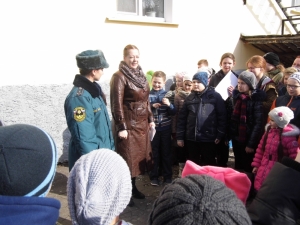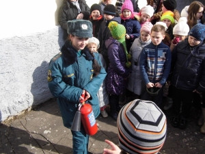 Затем инспектор отделения профилактики пожаров 1-го ОФПС Юлия Авдеева провела с участниками мероприятий беседу о правилах пожарной безопасности. Юлия напомнила присутствующим основные причины пожаров, и о том, как себя следует вести в случае обнаружения возгорания. Инспектора порадовало то, что каждый из ребят знает все три номера пожарной охраны «01», «112» и «101». А затем Юлия Авдеева продемонстрировала правила пользования огнетушителем и кратко рассказала о видах огнетушителей и их особенностях.
