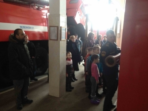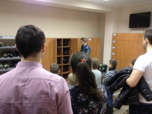 Сотрудники ПСЧ-1 провели с ребятами и их родителями познавательную беседу, на тему истории развитии пожарной охраны, а также продемонстрировали им пожарную технику и пожарно-техническое вооружение, рассказали о работе пожарно-спасательной части, показали диспетчерскую, где принимают сообщения о происшествиях. В боксах для техники был проведен осмотр боевой одежды, пожарно-спасательного инвентаря.