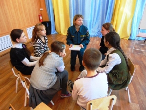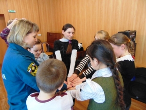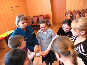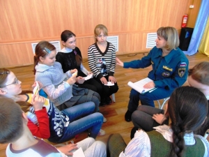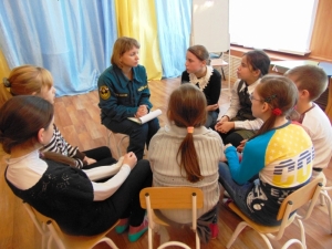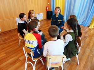 В беседе с воспитанниками центра была затронута такая важная тема, как поведение при возникновении пожара. Очень многие люди, не имеющие специальной подготовки или никогда до этого не бывавшие в условиях чрезвычайной ситуации, в случае пожара начинают паниковать. Психолог объяснила ребятам, что при возникновении пожара, в особенности в местах массового пребывания людей, таких как школа, магазин или торговый центр, никогда не нужно поддаваться всеобщей панике и самое главное – необходимо сохранять спокойствие и постараться покинуть помещение как можно скорее.