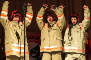 В итоге всех выступлений с минимальным отрывом победа досталась команде «Попробуй, потуши!» из Дома детского творчества города Десногорска - весёлая, сплочённая бригада с отличными типажами, хорошей коллективной и индивидуальной игрой и очень грамотным использованием видео-сопровождения. В первом выступлении ребята очень неплохо в шутливо-поэтической форме прошлись по каждому члену команды, дополнив номер юмористическими пожарными новостями. В СТЭМе юным КВНщикам наиболее удался разбор вопроса, почему пожары тушат только женщины, памятуя о «горящей избе» и «остановленном коне». В «узыкалке» команда заработала все высшие баллы членов жюри за представление собственной версии заочного соревнования профессий, в котором победителем выходит конечно же пожарный. И всё это под ностальгический для многих шлягер про милого бухгалтера, в хорошем темпе, весело и с очень приличным вокалом. В итоге - заслуженное первое место.