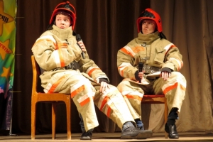 Вторую ступень импровизированного пьедестала заняли ребята из команды "Огнетушитель" рославльской школы №1. В приветствии многих позабавила шутка про буквальное понимание эвакуации при пожаре согласно плана эвакуации. Хорошо смотрелась и слушалась финальная песня первого номера. Практически высший балл получила команда в СТЭМе, где в ярких образах были представлены кошмарные сны папы-пожарного, в которых тёща (в данном случае - положительный персонаж) хваталась за оголённые провода, а дочь курила в постели.
