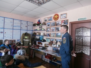 В заключение экскурсии сотрудники федеральной противопожарной службы напомнили ребятам основные правила поведения в случае возникновения пожара и продемонстрировал учебный видеофильм «Эвакуация в школе». Кроме того ребятам показали конкурсные работы учащихся Павловской средней школы прошлых лет, участвовавших в краевом конкурсе детского творчества "Пожарная ярмарка", и пригласили их поучаствовать в районном этапе данного конкурса в текущем году.