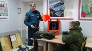 На первом этапе курсантам была продемонстрирована пожарно-спасательная техника, которая имеется на вооружении у огнеборцев. Ребята смогли увидеть пожарные машины, предназначенные для ликвидации пожаров в высотных зданиях, автомобили радиационной, химической и бактериологической защиты, которые используют для ликвидации последствий стихийных бедствий и техногенных катастроф. Особый интерес у курсантов вызвал беспилотный летательный аппарат, который в своей работе используют сотрудники МЧС. Это один из незаменимых помощников пожарных и спасателей во время проведения разведки и мониторинга ситуации на крупных пожарах, весеннем паводке, в сложной дорожной обстановке.