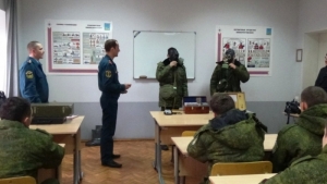 Продолжился флеш-моб мастер-классом по использованию средств индивидуальной защиты. Сотрудники МЧС продемонстрировали ребятам, как правильно надевать защитный костюм, противогаз, научили подростков правильно определять уровень радиации с помощью таких приборов, как измерители мощности дозы ДП-5А (Б) и ДП-5В, продемонстрировали им войсковой прибор химической разведки, который помогает определить наличие в воздухе ряда опасных химических соединений и паров.
