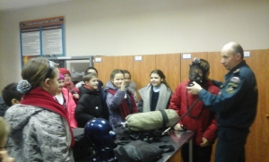 Учащиеся школы в диспетчерской, куда поступают тревожные звонки, узнали, что сотрудники МЧС России каждый день проводят занятия, для повышения своего профессионального мастерства. После этого ребята увидели дыхательные аппараты, которые используют в задымленных местах. Сотрудники ПСЧ-1 познакомили учащихся с тактико-техническими характеристиками пожарных автомобилей, находящихся на вооружении части, продемонстрировали своим гостям, возможности пожарного снаряжения, применяемого при тушении пожаров и проведении аварийно-спасательных работ.
