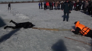 А для того, чтобы ребята запомнили несложные правила безопасного поведения и не попадали в экстремальные ситуации, Урок безопасности включал в себя и интерактивную часть. На находящемся в непосредственной близости к школе водоеме юные нижегородцы познакомились со средствами спасения провалившихся под лед людей, которые используют в своей повседневной деятельности сотрудники службы спасения, а так же увидели основные способы самоспасания при провале под лед и правилах оказания первой помощи пострадавшему. В этом ребятам помогли профессиональные спасатели аварийно-спасательного отряда Нижегородской области, которые сымитировали происшествие на воде и продемонстрировали различные приемы спасения провалившего под лед.