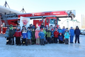 Со всей серьезностью юные спортсмены отнеслись к экскурсии, которая разработана по программе пошаговой доступности. В начале совместно с ребятами был проведен импровизированный развод караулов, где каждый ребенок занял свой квадратик. «Я – водитель, я – командир отделения, я – начальник караула!» - галдели ребятишки. Хором отсчитывали 20 секунд, за которые спасатель «по тревоге» надевал свою боевую одежду. Сами ребята тоже примерили пожарные каски и краги. И просто пришли в восторг, когда им позволили взобраться в кабины пожарных машин.
