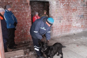 Кинологи областной поисково-спасательной службы провели тренировку для своих питомцев