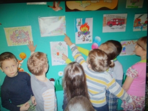 Так, инструктором противопожарной профилактики пожарно-спасательной части № 47, совместно с воспитателями детского сада «Родничок» для детей и их родителей был проведен конкурс детского рисунка на тему: «Дети против пожаров!». Некоторые ребята наглядно проиллюстрировали требования пожарной безопасности, которые должны знать и взрослые, и дети. На своих рисунках они не обошли стороной лозунг: «Спички детям не игрушка». Ребята в своем творчестве старались показать видение того, что же такое чрезвычайная ситуация, огонь, работа пожарных и спасателей, то есть, как выглядит пожарная охрана глазами детей.