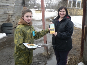 Юные добровольцы вместе с представителями МЧС России доводили до жителей Вичугского района основные требования пожарной безопасности при эксплуатации печного отопления и электроприборов, напоминали телефоны вызова пожарной охраны и вручали памятки по пожарной безопасности. Особое внимание было уделено инструктажам граждан, проживающих в домах с низкой степенью пожарной устойчивости. Все без исключения взрослые, с которыми проводились беседы положительно реагировали на ребят, одетых в специальную форму участника ДЮП.