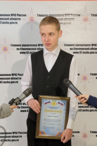 Сегодня в Главном управлении МЧС России по Смоленской области состоялась церемония награждения пятерых подростков, которые проявив смелость и неравнодушие, спасли мужчину. Это - Дмитрий Якушев (МБОУ СОШ №1, 10 класс), Владислав Артемьев (СмолАПО), Дмитрий Сахно (МБОУ СОШ №1, 9 класс), Злата Яшина (Смоленский педагогический колледж), Софья Лавренкова (Смоленский педагогический колледж). В торжественной обстановке временно исполняющий обязанности начальника Главного управления МЧС России по Смоленской области полковник Владимир Волосач вручил ребятам почетные грамоты и поблагодарил за проявленное неравнодушие и грамотные действия при оказании помощи человеку, попавшему в трудную ситуацию.