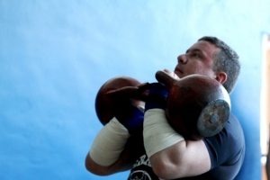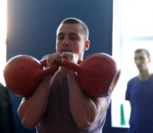 Толчок двух 24-килограммовых гирь от груди и рывок гири поочередно одной и другой рукой - по такой программе соревновались участники мероприятия.