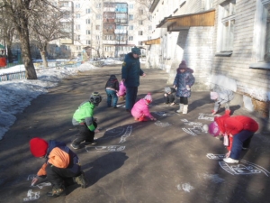 Один из мартовских солнечных деньков в детском саду №8 города Гороховца начался необычно – с конкурса рисунка на асфальте на противопожарную тематику.