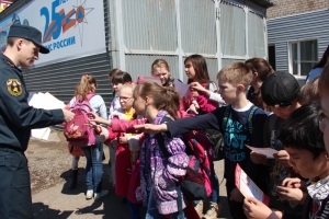 В заключительной части занятия начальник отдела надзорной деятельности и профилактической работы по Железнодорожному району Виктор Скударнов и инспектор отдела Валерия Рубан напомнили ребятам правила пожарной безопасности, рассказали про опасность поджога сухой травы, тополиного пуха, о важности своевременного обращения в службу спасения, в пожарную охрану в случае возникновения пожара. Завершая урок, сотрудники отдела пожарного надзора вручили ребятам памятки с правилами пожарной безопасности.