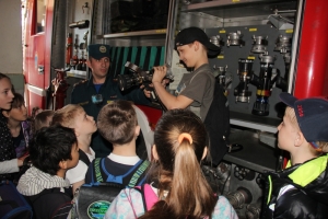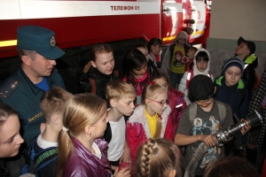 В депо части Михаил Илявин познакомил ребят с железными "боевыми друзьями" огнеборцев - пожарными автомобилями. Четвероклассникам было интересно узнать о том, сколько всевозможного оборудования находится почти в каждом спецавтомобиле. Школьникам не просто показали все отсеки, но и разрешили их потрогать. Каждый желающий смог прикоснуться к гидравлическим ножницам, взять в руки пожарный рукав.