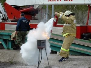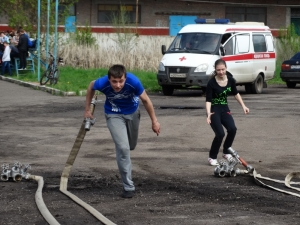 Самым захватывающим был финал. Программа проведения финального дня всегда отличается от окружных этапов. Сильнейшие команды города должны совершить не только подъем по штурмовой лестнице в окно второго этажа учебной башни и преодолеть стометровую полосу с препятствиями. Мальчишки и девчонки должны доказать, что они настоящая команда в эстафете, которая усложнена одеванием боевой одежды пожарного и тушением газовой горелки порошковым огнетушителем.