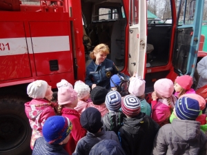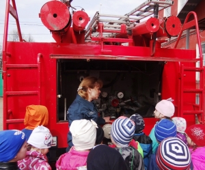Специалист, рассказала об истории пожарного депо, и об обязанностях личного состава сегодня. Детвора с удовольствием слушала о спецавтомобиле, рассматривая различные приборы и оснащение. Негодаева Е.Л. рассказала об устройстве и необходимости дыхательного аппарата и аварийно-спасательного инструмента, показала дошколятам служебные помещения пожарной части. У Диспетчера, малыши увидели современное оборудование, на которое поступают сигналы о срабатывании пожарной сигнализации с социально значимых объектов, повторили номера телефонов экстренных служб, и правила вызова пожарной охраны.