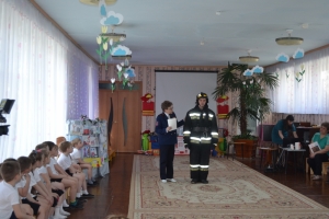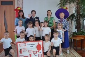 Для детей был продемонстрирован фильм о боевой работе пожарных. Затем перед ребятами выступила инструктор Сысертского ВДПО Татьяна Степура, ребята хором отвечали на вопросы, отгадывали загадки. И вот появился главный гость - настоящий пожарный. Командир отделения 112 пожарно–спасательной части Александр Васьков продемонстрировал боевую одежду. После этого всем захотелось примерить каску пожарного. И, конечно же, ребятам было интересно показать свою спортивную подготовку для гостей. Разбившись по командам « Спасатели», « Пожарные» и «Огоньки», дети с азартом «тушили» домик водой и песком. Соревновались в преодолении препятствий, спасали любимые игрушки. Учили Незнайку, как правильно поступать в той или иной ситуации. Шумно и весело пролетело время, а главное с пользой.