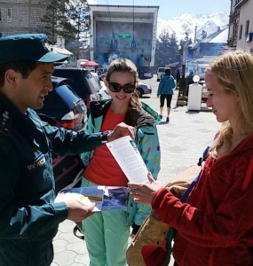В период майских праздников на курорте «Приэльбрусье» организовано дежурство оперативной группы Главного управления МЧС России по Кабардино-Балкарской Республике. В ходе дежурства сотрудники МЧС патрулируют места массового скопления отдыхающих. Они проводят инструктажи и беседы, раздают буклеты и памятки, доводят прогноз погоды на предстоящие сутки и напоминают о едином номере вызова экстренных служб «112». Не остаются без внимания и гостиничные комплексы курорта. Сотрудники МЧС проводят инструктажи среди персонала гостинец по соблюдению мер пожарной безопасности.