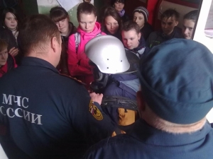 В ходе встречи ребятам показали работу в дыхательных аппаратах АП «Омега», разрешили посидеть в кабинах пожарных машин, примерить боевую одежду.