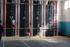 Команды соревновались в 3-х видах пожарно-прикладного спорта: прохождение 100-метровой полосы с препятствиями, подъём по штурмовой лестнице в окна 1-го и 2-го этажей учебной башни, надевание боевой одежды.