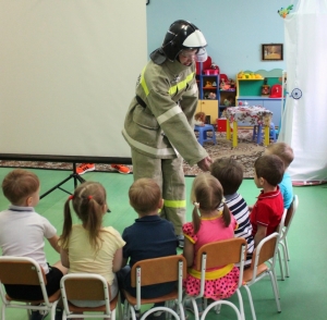 Студенты-спасатели рассказали о профессии пожарного, о злом и добром огне. Во время беседы дети активно отвечали на вопросы по пожарной безопасности, интересовались работой спасателей и деятельностью добровольцев.
