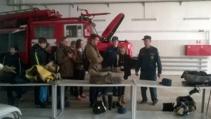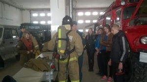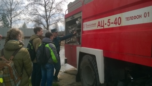 Школьники познакомились с профессией пожарного и попробовали себя в роли огнеборцев, примерев их снаряжение. Неизгладимое впечатление на детей произвела техника, прежде всего пожарные машины.