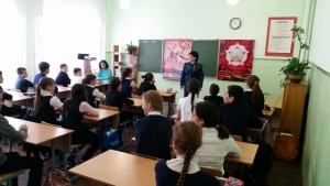 В рамках урока Оксана Дзампаева познакомила учащихся с фактами героизма служащих пожарной охраны в годы Великой Отечественной войны. Рассказала подробнее о североосетинских огнеборцах, стоявших на защите Родины.