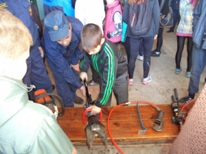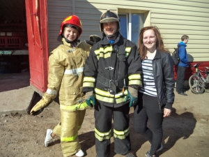 Вся имеющаяся техника, вооружение, снаряжение были предоставлены в распоряжение детворе. Ребята попробовали всё - вязку узлов на спасательной веревке, спуск по столбу из комнаты отдыха в помещение гаража, надевали боевую одежду, подавали воду из ранцевого огнетушителя. Да всего и не перечислить.