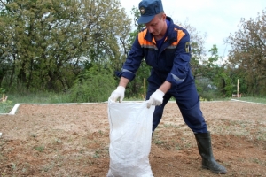 В преддверии 71-й годовщины Победы в Великой Отечественной войне и 72-ой годовщины освобождения Севастополя от немецко-фашистских захватчиков сотрудники МЧС принимают активное участие в облагораживании памятников, посвященных героям тех страшных сражений. В канун 9 мая сотрудники чрезвычайного ведомства благоустроили памятник воинам легендарной 365-ой зенитной батареи. В годы Великой Отечественной войны это место было ареной ожесточённых боёв. Ежегодно земля продолжает поднимать наверх неразорвавшиеся боеприпасы. Именно поэтому в первую очередь пиротехники Специализированного отряда Главного управления МЧС России по городу Севастополю провели обследование территории мемориала на наличие взрывоопасных предметов. В результате проверки местности из земли были извлечены и вывезены для дальнейшего уничтожения пять боеприпасов времен ВОВ, в их числе двадцати пяти килограммовая авиационная бомба, артснаряд калибра 203мм, минометная мина калибра 82мм и два взрывателя к артиллерийским снарядам.