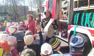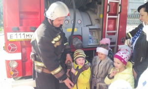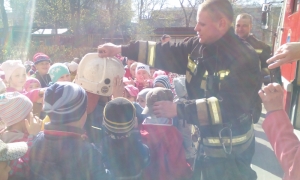 Так, сегодня, 5-го мая, пожарные побывали в гостях у воспитанников детского сада №19. Большая красная машина с сиреной и проблесковыми маяками под восторженные детские крики въехала в ворота садика. Малыши гурьбой обступили пожарных, каждому хотелось подойти поближе, дотронуться до машины, потрогать настоящего пожарного. Ведь, к счастью, наши дети считают супергероями не вымышленных персонажей из комиксов, а реальных людей, пожарных и спасателей, которые рискуя своей жизнью, спасают людей.