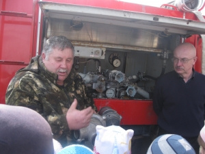 После проведения беседы школьники с интересом осмотрели пожарную машину и провели несколько тренировок по работе с пожарно-техническим вооружением и одеванию боевой одежды пожарного.