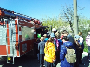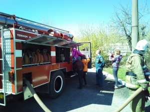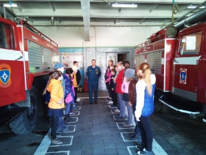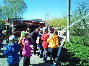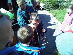 Детям показали технику, рассказали об ее устройстве, продемонстрировали боевой костюм и снаряжение пожарных. Гостям также продемонстрировали отработку норматива по пожарно-строевой подготовке «сбор и выезд по тревоге», подъем в окно учебной башни. Дети с интересом наблюдали, как пожарные быстро облачались в боевые костюмы. Многие потом захотели примерить «боёвку» и почувствовать себя настоящими огнеборцами.