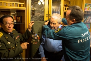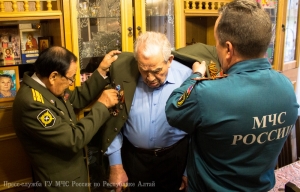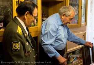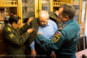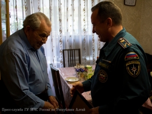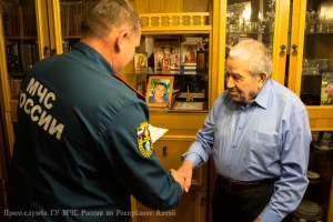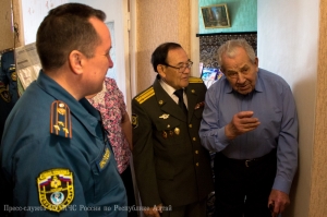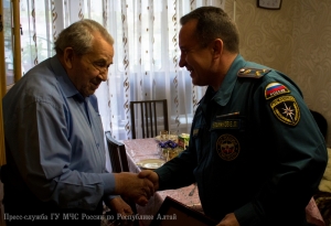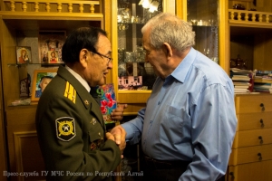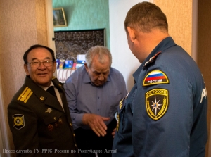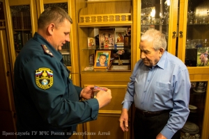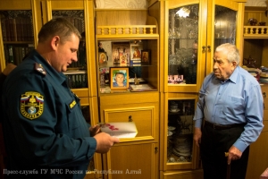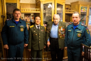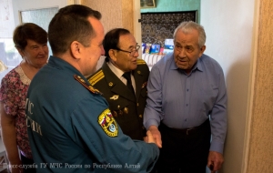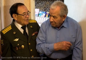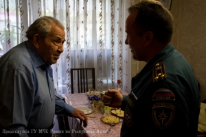 В преддверии 71-ой годовщины со Дня Победы в Великой Отечественной войне, заместитель начальника Главного управления МЧС России по Республике Алтай по государственной противопожарной службе полковник внутренней службы Евгений Петрович Ельников, начальник первого отряда ФПС МЧС Республики Алтай полковник внутренней службы Евгений Леонидович Брылёв и председатель комитета ветеранов МЧС России по Республике Алтай Алексей Петрович Адуков поздравили с Днём Победы и вручили подарки ветеранам Великой Отечественной войны, посвятившим свою трудовую деятельность службе в пожарной охране нашего региона.