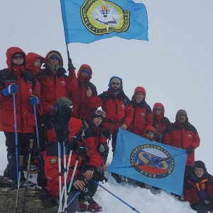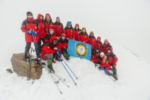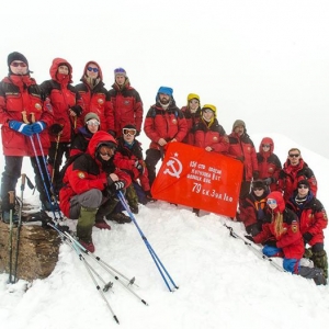 Подъем на вершину проходит в честь 15-летия Всероссийского студенческого корпуса спасателей, десятилетия Российского союза спасателей и Дня Победы.