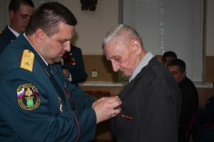 Начальник Главного управления МЧС России по Калужской области генерал-майор внутренней службы Клименко Валерий Иванович обратился к присутствующим с праздничной речью и вручил фронтовику памятные подарки.