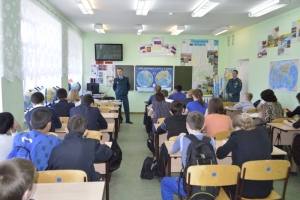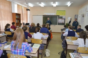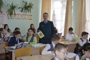 Сотрудники МЧС объяснили детям, как вести себя, чтобы обеспечить личную безопасность и безопасность окружающих в различных ситуациях. Денис Малыхин провел беседу с учениками на тему «Безопасность населения на водоемах в весенний период» и о правилах поведения населения в зоне возможного подтопления паводковыми, талыми и дождевыми водами. Дмитрий Федоров рассказал детям о возможных огненных опасностях в весенний период, о запрете использования открытого огня на дачных участках, придомовых территориях, запрете разведения костров и палов травы.