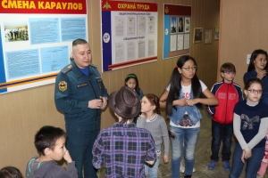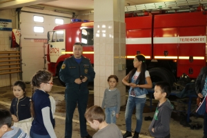 В расположении части огнеборцы показали школьникам, как работает узел связи, продемонстрировали гараж и пожарную технику, помещения для физподготовки и отдыха. Ребята примерили настоящую боевую одежду пожарного, экипировку бойцов газодымозащитной службы, снаряжение для эвакуации из задымленной зоны. В завершение мероприятия пожарные провели для ребят небольшую эстафету по сбиванию мячей на расстоянии с помощью струи воды из пожарного рукава.