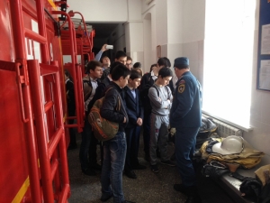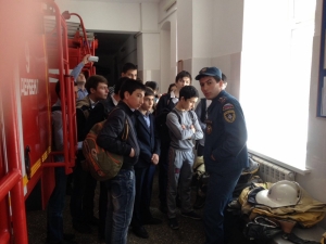 Экскурсия произвела на ребят большое впечатление. Ребята засыпали огнеборцев вопросами об их профессиональной деятельности. Их интересовало, где хранятся рукава, откуда пожарные закачивают воду, откуда берется пена, за какое время автомобиль приедет на место чрезвычайной ситуации, как часто случаются пожары. Ребята побывали и в комнате отдыха, увидели учебный класс и пожарно-спасательный инвентарь.