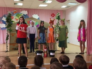Ребята из дружины юных пожарных «Пламенный» лицея №3 Ленинского района г.Екатеринбурга с театрализованным выступлением - сказкой «Теремок» выступили перед младшими школьниками. Юные пожарные наглядно показали ребятам, зачем нужно соблюдать правила пожарной безопасности, чего делать нельзя и какие бывают способы тушения пожара.