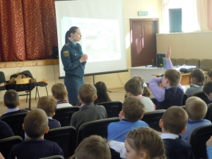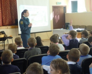 В ходе занятия сотрудники МЧС напомнили школьникам правила пожарной безопасности в быту и школе, как вести себя в случае пожара и любой другой чрезвычайной ситуации. Ребята узнали, какие подручные средства можно применить для тушения различных видов возгораний, как защитить себя от ожогов и чем можно защитить органы дыхания и зрения при пожаре. Инспекторов Госпожнадзора порадовало - дети знают, что нельзя баловаться со спичками, зажигалками, пиротехникой и электричеством. Знают ребята и номера вызова экстренных служб.