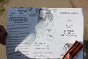 Ребята отправились по улицам поселка Строитель, для того, что бы вручить всем желающим георгиевскую ленточку, а так же памятки по пожарной безопасности.
