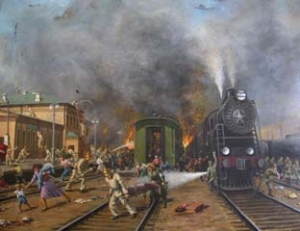 Немецкая авиация ежедневно бомбила железнодорожный узел. Пожарные, несмотря на бомбежки, продолжали тушить огонь, спасать раненых и восстанавливать железнодорожные пути.