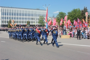 Один из ответственных моментов - прохождение войск Тамбовского гарнизона. Главное управление МЧС России по Тамбовской области было представлено парадным расчетом более 50 наиболее отличившихся сотрудников и младшего начальствующего состава, неоднократно принимавших участие в ликвидации чрезвычайных ситуаций и их последствий, как на родной земле, так и в других субъектах Российской Федерации.